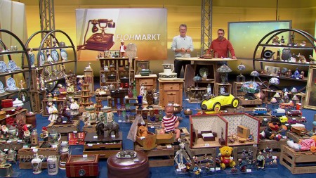 Wie immer lohnt sich ein Bummel über den aktuellen Flohmarkt mit Michael Friemel: Neben den beliebten Lampen im Tiffany-Stil, gibt es diverse Sammelobjekte im Studioangebot, darunter Mainzelmännchen, Miniatur-Bullys, Blechspielzeug, Schildkröten-Puppen, Küchenantik und vieles mehr.