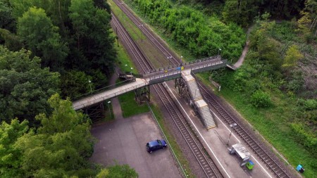 Viele Wochen haben keine Züge am Bahnhof Bildstock gehalten. Der Bahnsteig ist nur über eine Brücke zu erreichen. Diese Brücke war kaputt. Deswegen war sie gesperrt.
