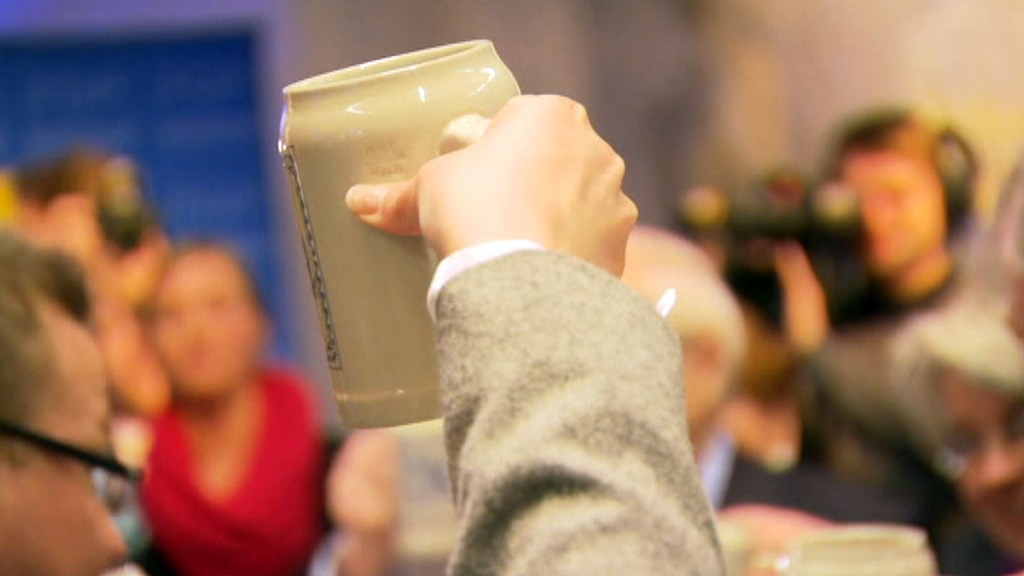 Eine Hand mit einem Bierkrug